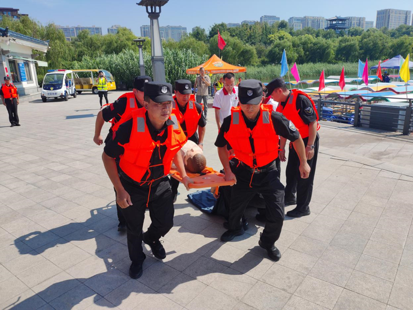 市保安公司在齊盛湖公園舉行防溺水應(yīng)急救援演練