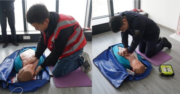 在心肺復(fù)蘇現(xiàn)場(chǎng)實(shí)操過(guò)程中,參訓(xùn)員工嚴(yán)格按照從現(xiàn)場(chǎng)環(huán)境安全評(píng)估、判斷意識(shí)心跳呼吸,到胸外按壓、開放氣道、人工呼吸的流程反復(fù)練習(xí),確保動(dòng)作標(biāo)準(zhǔn)、力度到位。
