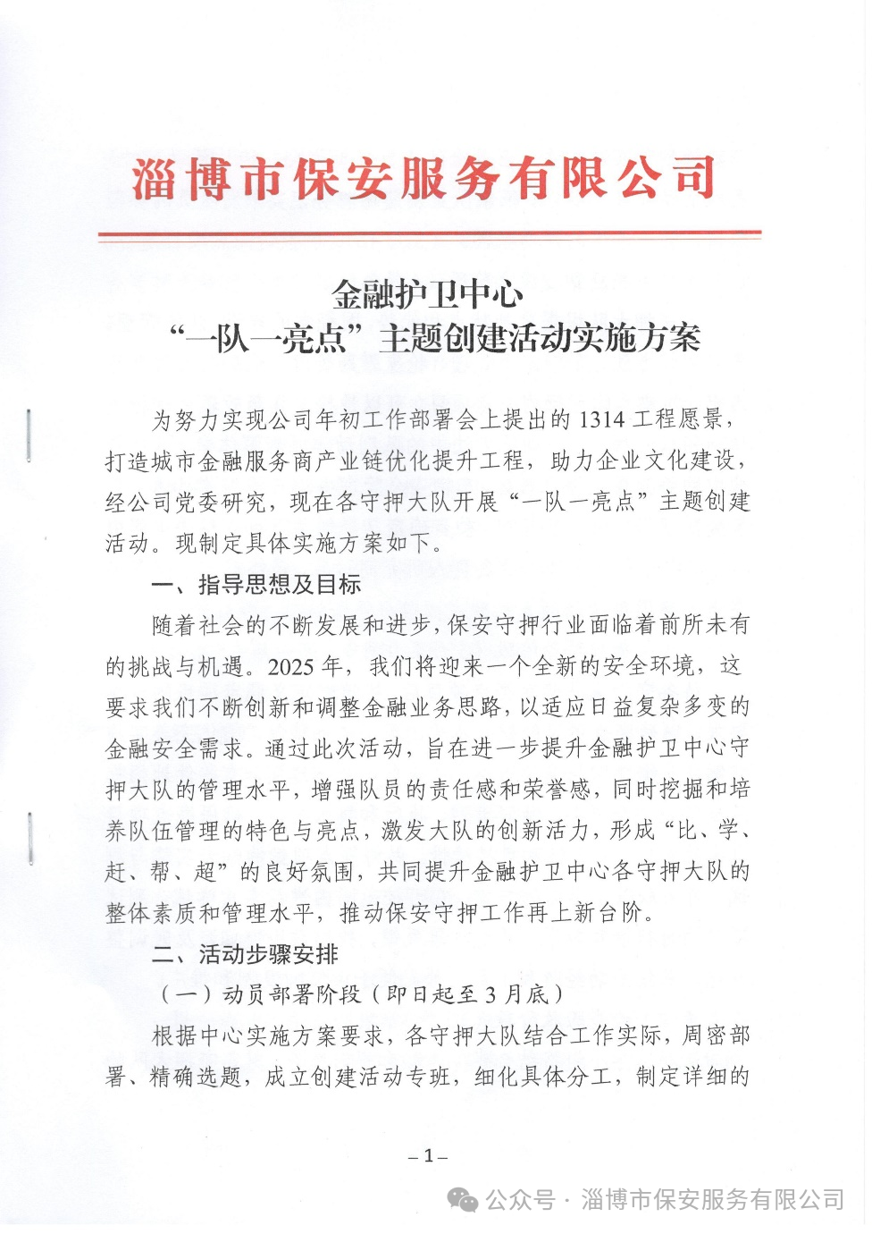 淄博市保安服務(wù)有限公司部署開展“一隊一亮點”主題創(chuàng)建活動